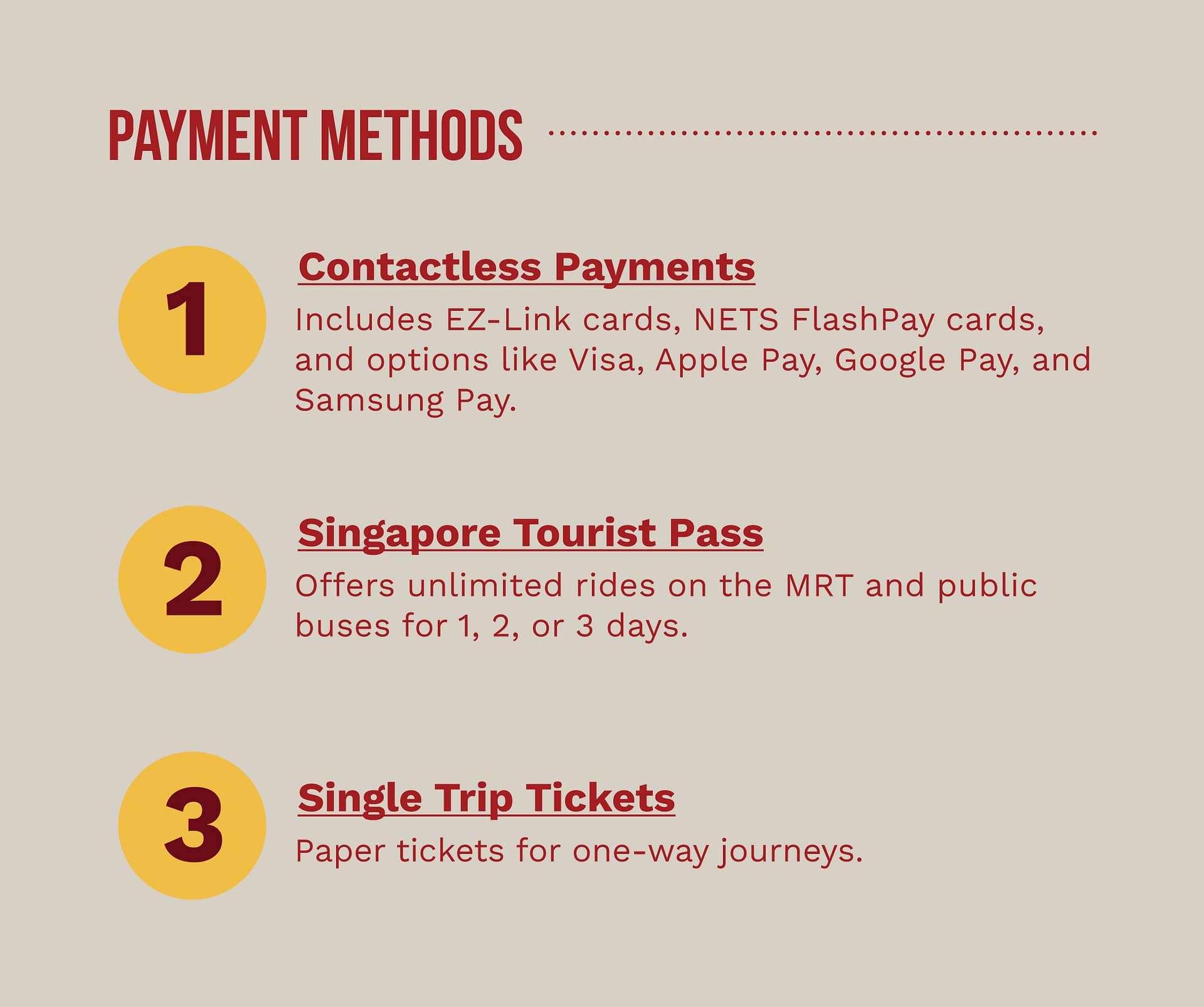 For Heavy Users. Offers unlimited rides for 1, 2, or 3 days. Buy at Changi Airport or major MRT stations.
